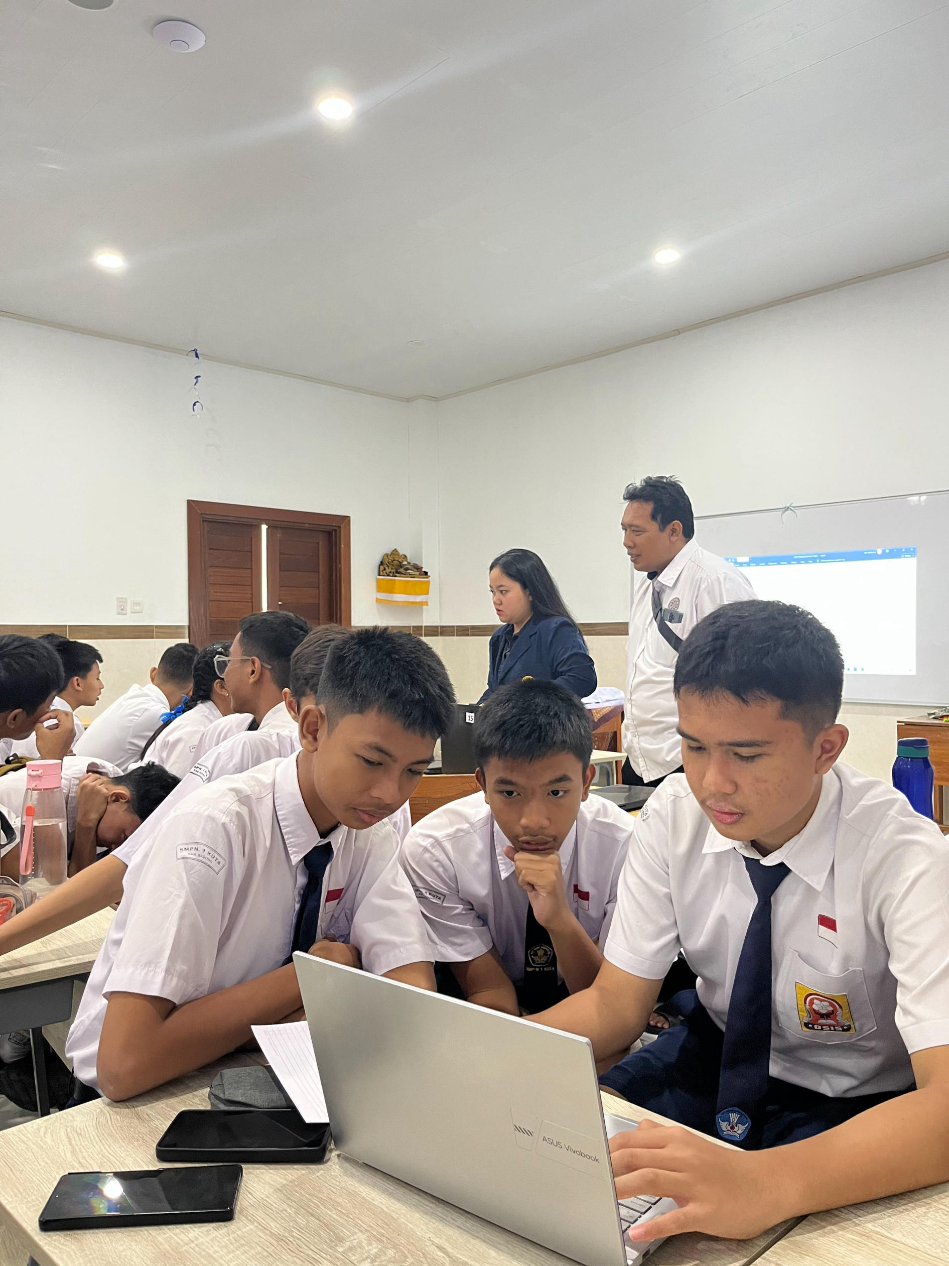 On Monday, August 25, 2025, the Bachelor of English Literature, Faculty of Humanities, Udayana University held an innovative workshop that combined English narrative writing with the use of Artificial Intelligence (AI) technology. This activity was carried out at SMP N 1 Kuta, which was a realization of cooperation in the form of community service. This activity was intended for ninth-grade students and aimed to hone their creativity in storytelling while introducing the use of various digital devices to support language learning. The training was led by Prof. Dr. I Wayan Mulyawan, S.S., M.Hum. He is a lecturer in the Bachelor of English Literature at the Faculty of Humanities Udayana University who is also the chairman of the Community Service Team.