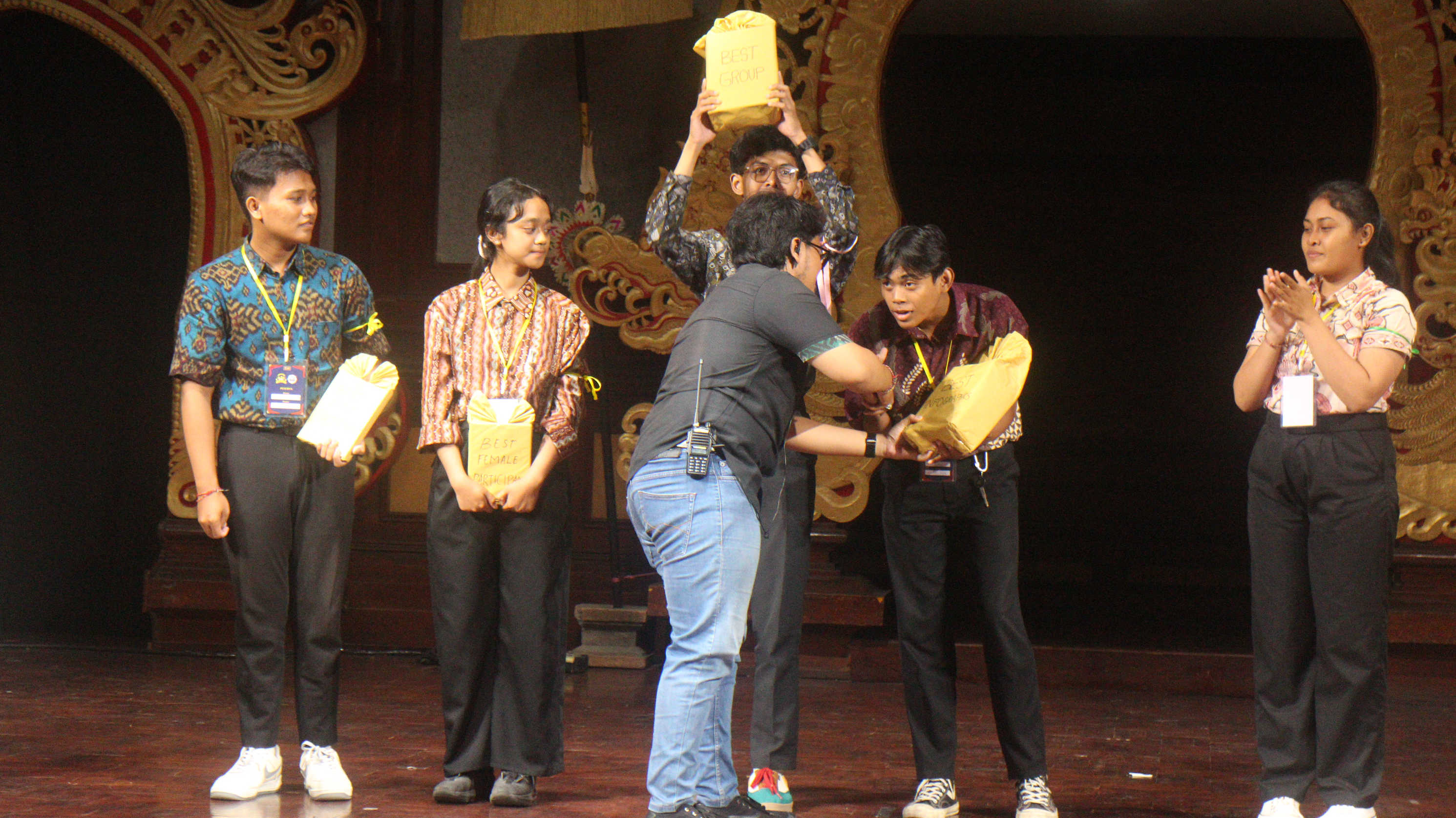At the closing ceremony of LKMM-TD Faculty of Humanities 2025, the Chairman of the Organizing Committee, I Gede Sandika Arya Guna, delivered his report stating that the LKMM-TD Faculty of Humanities 2025 event was prepared for about three months with 135 committee members. The Chairman of the SMFIB expressed appreciation for the hard work of the committee and all parties who assisted in the event. The Vice Dean III of Faculty of Humanities also appreciated the enthusiasm and spirit of all new students who participated in the 2025 FIB LKMM-TD series. She officially closed the event by revoking the kayon. The event was filled with the committee video screening and ended with the presentation of awards for the best categories for the best participants, the best cluster, and the best cluster infographics.